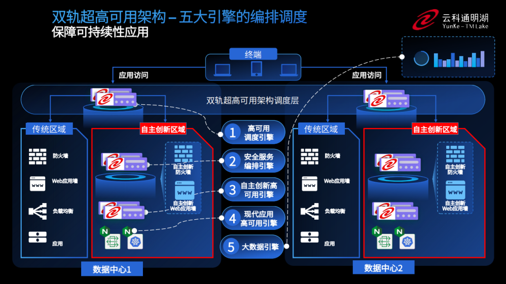 为实现双轨超高可用架构信创区和非信创区的跨域协同,实现信创区域和非信创区域的平滑过渡,BG集团官网通过五大引擎实现多层次的应用可持续性。
